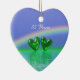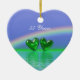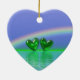 Ornament mit meinem Bild von zwei smaragdgrünen Herzen schwimmen auf dem Wasser unter einem Regenbogen mit Text, der sagt "55 Jahre".