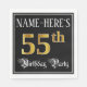 This luxurious and elegant birthday paper napkin design features a personalized name and the message “55th Birthday Party”. The large number “55th” has an imitation/faux gold-inspired coloring pattern, the words “Birthday Party” are in ornate script-style text, and the background is colored black by default (although it can be customized). Ornate, fancy paper napkins like this might be used at a birthday celebration being held in celebration of somebody’s 55th birthday. [~Z0000565]