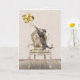 Graue Tischkatze mit Goldfolie-Ballons auf einem altmodischen Stuhl zum 56. Geburtstag.