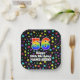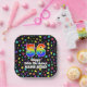 This exciting and colorful birthday themed paper plate design features a large number “56” with a rainbow spectrum gradient inspired pattern, along with the message “Happy 56th Birthday,”, and a personalized name. The background features an exciting and colorful pattern having many star shapes with different sizes and colors. Cheerful birthday themed paper plates like this might be used at a birthday party in celebration of somebody’s fifty sixth birthday. [~Z0000582]