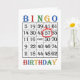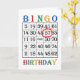 57. Geburtstagkarte. Sage einen Glückwunsch zum Geburtstag zu einem Bingo-Spieler mit einer Bingokarte. Das Alter ist rot eingekreist. Ein Bingo-verrückter Spieler bekommt einen Riesenkick aus dieser Karte! Copyright Norma Cornes.