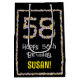 Dieses florale, in Botanik inspirierte Geschenktütendesign mit dem Motto "Happy 58 th Birthday" und einem individuellen Empfängernamen. Die große Zahl "58" und die Grenze bestehen aus Blume-Icons. Eine solche Gifttasche könnte eine lustige Art sein, ein Geburtstagsgeschenk zu verpacken, das jemandem geschenkt wird, der seinen achtundfünfzigsten Geburtstag feiert. [~Z0000653]