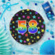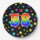 Diese farbenfrohe, fröhliche und lustige Papierplatte zeichnet sich durch eine große Zahl "58" mit einem inspirierten Regenbogenspektrum aus. Der Hintergrund weist ein farbenfrohes Sternmuster auf. Teller wie diese können bei einer Feier zum 58. Geburtstag eines Mannes, zum 58. Geburtstag eines Paares oder zum 58. Geburtstag oder zu einer anderen 58. Veranstaltung genutzt werden. [~Z0000493]