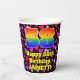 This cheerful and fun birthday-themed paper cup design features a large number “58” having a rainbow spectrum gradient inspired pattern. It also features the message “Happy 58th Birthday,”, and a customizable name. The background features a pattern of pink, purple, and red heart shapes of various sizes. Friendly, cheerful paper cups like this might be fun to have at a birthday celebration/party being held to celebrate somebody’s fifty eighth birthday. [~Z0000548]