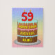 Dieses lustige und fröhliche Puzzle-Design aus dem Geburtstag zeigt eine Cartoon-Darstellung eines dreistufigen Geburtstagskuchens mit nummerförmigen Kerzen auf der Oberseite, die das Alter "59" zeigt, sowie die Meldung "GLÜCKLICH 59. BIRTHDAY" und einen benutzerdefinierbaren Empfängernamen. Der Hintergrund weist ein mehrfarbiges pastellfarbenes Regenbogenspektrum auf, das durch inspirierte Farbverlaufsmuster gekennzeichnet ist. Ein buntes, bearbeitbares Geburtstagsrätsel wie dieses könnte zum Feiern des neunundfünfzigsten Geburtstages von jemandem gegeben werden. [~Z0000621]
