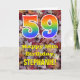 Die Vorderseite dieser farbenfrohen, naturlich inspirierten und rustikalen Geburtstagskarte zeigt eine große Zahl "59" mit einem inspirierten Regenbogenverlauf, zusammen mit der Meldung "Happy 59th Birthday" und einem anpassbaren Namen. Die Vorderseite zeigt einen Hintergrund mit rustikalen gefallenen Herbstblättern. Im Inneren befindet sich eine benutzerdefinierte Geburtstagsgrüßbotschaft, oder man könnte sie löschen und leer verlassen werden, wenn eine Nachricht von Hand geschrieben werden soll. Eine solche individuelle Geburtstagskarte könnte eine lustige Art sein, Geburtstagswünsche an jemanden zu senden, der seinen neunundfünfzigsten Geburtstag feiert. [~Z0000384]