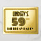 The front of this stylish and Roaring Twenties inspired fifty-ninth birthday party/celebration foil invitation postcard design features a custom name, an intricate art deco look inspired number “59th”, the message “BIRTHDAY PARTY”, and a multi-line border. The back features personalized details about the event, such as the date, time, venue/location, and any other information that may be important. Luxurious, stylish, customized invitations like these might be used to invite attendees to a birthday gathering/party being held to honor somebody’s 59th birthday. [~Z0000610]