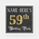 This opulent and elegant birthday themed paper napkin design features a custom name and the message “59th Birthday Party”. The large number “59th” has an imitation/faux gold-inspired coloring pattern, the words “Birthday Party” are in luxurious script-style text, and the background is colored black by default (although it can be customized). Fancy, luxurious paper napkins like this might be useful to have at a birthday celebration being held to honor somebody’s 59th birthday. [~Z0000565]
