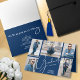 Fügen Sie Ihre Lieblings-fünf Fotos an die Vorderseite dieser marineblau gefalteten Abschlussankündigungen mit dem Wort Abitur in chic Schriften zusammen mit Ihrem Namen und Klassenjahr. Ihre Ankündigungsdetails befinden sich im Inneren. Weitere Designs und Farben in unserem Shop, einschließlich Party Einladungen, speichern Sie die Datumskarten und Postkarten.