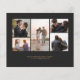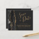 Diese elegante Save the Date-Karte verfügt über einen schwarzen Aquarellstreifen, der mit Imitaten vergoldeten Glitzer bestickt wurde. Der anpassbare Text kombiniert goldfarbene Handschriftenschrift, Copperplate und kursiv Schriftart auf einem schwarzen Hintergrund. Die Rückseite bietet Platz für 5 Fotos (2 quadratisch, 2 horizontal, 1 vertikal) und Platz für Ihre Website URL oder andere Informationen. Ersetzen Sie die Beispielbilder einfach durch Ihre eigenen Lieblingsbilder.