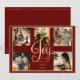 "Joy" in schönen Imitaten goldenes Skript. Saisonroter Hintergrund. Fügen Sie Ihre Lieblings-Familienfotos zu personalisieren. Ändern Sie die Namen und das Jahr, Ihren Namen und was für eine schöne Urlaubskarte. elegant. So einfach, doch schick.