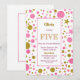 Ein rosa und goldene Sterne, und Spots, wie Riesenkonfetti, 5. Geburtstagsfeier Einladung.