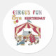 Der 5. Geburtstag des Zirkus mit Clown, Siegel, Elefanten, Affen, Löwen, Tiger, Zebra und farbenfrohen, lustigen Texten.