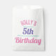 Papiertüten für eine 5. Geburtstagsfeier. Entworfen für ein Kind, das einen Geburtstag hat. Geburtstagsfeier Party Tasche mit dem Alter. Geburtstagsfeier. Geben Sie den Namen und das Alter der Person an, deren Geburtstag es ist. Bonbonbeutel. Sweeties Tasche.
