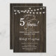 5. Hochzeitstag Feier Einladung. Rustikales Design mit dunkelbraunem Holzmuster und Feenklingelleuchten. Features Skript eleganten Schriftart. Feiern Sie bis 5 Jahre! Kann in jedem Heiratsjahr personalisiert werden! Nachricht, wenn Sie weitere Anpassungen benötigen.
