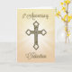 Eine 5. Ordination Jubiläumskarte mit einem Gold Look Cross. Feiern Sie ein Jubiläum mit dieser Sternexplosion, die Leben bringt und sich auf das Kreuz konzentriert.