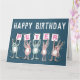 Geburtstagskarte für jemanden mit einem 5-Buchstaben-Namen. Spaß Geburtstagskarte mit Darstellung der Kaninchen in Rosa und Blau. Die Kaninchen halten Karten auf, um den Namen zu benennen.