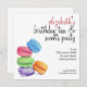AquarellBleistift-Abbildung von fünf köstlichen, bunten Makaronen, eine schöne Einladung für jede Gelegenheit: Geburtstage, Brautpartys, Tees oder ein freundliches Treffen speziell für Liebhaber von süßem Zahn!