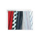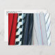 Fünf abgerundete Teile des Stoffes bestehen aus dem Farbfoto, einem kleinen nahen Aufgang von Shirts, die in meinem Schrank hängen. Von verlassen nach rechts: rote Leinen; Polyester mit schwarzen, hellblauen und cremefarbenen Diamanten; Marineblche mit Paaren aus feinen grauen Streifen; hellblaues Polyester mit Paaren aus feinen, cremefarbenen Streifen und abwechselnd marinebroten und roten Akzenten; und weiße Baumwolle mit abwechselnden blauen und schwarzen Streifen wie bei Ticken. Die Falte in der roten Leinenfalte führt zu einer starken dunklen Diagonale, die zum unteren links des Rahmens führt. Die Falten und Streifen der drei Shirts auf der rechten Seite sind in gegensätzlichen Diagonalen, die dem Bild Bewegung verleihen. Die Beschaffenheit der Materialien variiert von Shirt zu Shirt. Digitales, Farbfoto. Copyright © 2011 Claire E. Skinner. Alle Rechte vorbehalten.