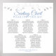 Machen Sie Ihren Hochzeitsempfang mit diesem Sitzplan schön. Sie sind als Teil unserer Blue & Grey Elegant Wedding Suite konzipiert und zeichnen sich durch ein schlichtes und elegantes Design aus. Sie sind hellblau & grau auf weißem Hintergrund mit einem blühenden Rahmen aus silbernen Imitaten. Dieses Diagramm zeigt die Tabellenzuordnungen, damit Ihre Gäste den richtigen Tisch leicht finden können.