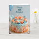 This charming birthday card features a beautifully decorated ocean-themed cake in soft shades of blue and coral. Playful dolphins circle the top among delicate seashells and floral accents, while five glowing candles add a warm celebratory touch. Perfect for a child’s 5th birthday, this design captures the magic of the sea with a sweet, elegant twist.