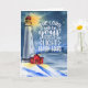 Die Grußkarte mit Inspirationsurteil zeigt einen Leuchtturm in Aquarellfarben, dessen Licht durch den blauen Schnee bestrahlt wird. Es enthält einen Teil der Bibel Verse Isaiah 60:20, "Der Herr wird dein immerwährendes Licht sein." *
