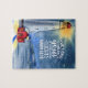 Inspirational quote scripture jigsaw puzzle depicts a watercolor lighthouse with the light shining through the blue snow filled night. It feys a portion of Bible Verse Isaiah 60:20, "The Lord will be your everlasting light."