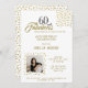 60 and Fabulous Gold Glitter Photo 60th Birthday Party Invitation. The design has faux gold glitter dots and the saying 60 and fabulous is in modern script. Make a 60th birthday party invitation with a photo.