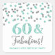 60 und fabelhafte Geburtstagsparty bevorzugen Tag-Aufkleber mit Silber und Türkis Konfetti.