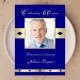 Diese individuelle Einladung zum 60. Geburtstag ist ein tolles Fest, denn sie stellt den Geburtstagsfeier als Mittelpunkt mit einem Foto des Geburtstags in einem goldenen Rahmen auf marinebasischem Hintergrund. Über dem Foto sind die Worte "60 Jahre feiern" und unter dem Foto stehen die Worte "Bitte schließen Sie uns an, um zu ehren" mit einem Platz für den Namen der Ehrenbürgerin. Die Rückseite der Einladung hat die Party-Details. Das ist eine großartige marineblau-goldene Einladung zu einem 60. Geburtstag. Copyright henishouseuse paper