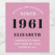 Ein personalisiertes klassisches Label-Design für diese Geburtstagsfeier für eine besondere Frau, geboren 1961 und ab 60. Fügen Sie den Namen zu diesem Vintagen Retro-Stil rosa, weiß und schwarz Design für ein maßgeschneidertes 60. Geburtstagsgeschenk. Bearbeiten Sie den Namen und das Jahr einfach mit der Vorlage. Ein wunderschönes individuelles, rosa Geburtstagsgeschenk. Mehr Geschenke und Partyartikel für das 60. Partyfest im Laden.