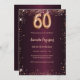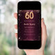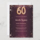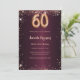 Für einen eleganten 60. Geburtstag. Eine burgundische Hintergrundfarbe. Dekoriert mit Rose Gold Imitate Glitzern. Personalisieren und fügen Sie einen Namen und Party-Details hinzu. Der Name wird mit einem handgeschriebenen Stilskript geschrieben