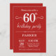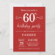 60. Geburtstag Einladung mit rotem Hintergrund. Erwachsener zum Geburtstag. Männer oder Frauen laden ein. 13. 15. 16. 18. 20. 21. 30. 40. 50. 60. 70. 80. 90. 100. Jedes Alter. Für weitere Anpassungen klicken Sie bitte auf die Schaltfläche "Anpassen" und verwenden Sie unser Designwerkzeug, um diese Vorlage zu ändern.