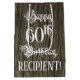 Dieses verzierte und aufwändige Geschenktütendesign enthält die Meldung "Happy 60 th Birthday", im aufwändigen Skriptstil-Text, auf einem Imitat Holzmuster-Hintergrund. Es enthält auch einen personalisierten Empfängernamen. Eine extravagante Geburtstagsgeschenktüte wie diese ist vielleicht eine respektable Art, ein Geschenk oder Geschenk zu verpacken, das zur Feier des sechzigsten Geburtstages von jemandem gegeben wird. [~Z0000558]