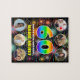 Dieses fröhliche und aufregende Jigsaw Puzzle-Design aus dem Geburtstag zeigt eine große Zahl "60", die ein lebendiges Regenbogenspektrum inspiriert Farbverlaufsmuster hat, zusammen mit der Meldung "HAPPY 60 th BIRTHDAY" und einem editierbaren Namen, auf einem Muster inspiriert, das durch das Platzen mehrfarbiger feierlicher Feuerwerke wird. Ganz oben und unten sind Bilder, die individuell angepasst werden können, vielleicht mit Fotos des Empfängers und/oder der Familie und Freunden des Empfängers. So ein optimistisches, maßgeschneidertes Geburtstagspuzzle kann zum Feiern des sechzigsten Geburtstages von jemandem verschickt werden. (Fotografie © Storytree Studios, Stanford, CA.) [~Z000664]