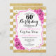 Einladung zum 60. Geburtstag. Elegantes goldfarbenes Rosa Design mit Imitat Glitzer. Gold-weiße Streifen mit rosa Rosen. Ideal für eine elegante 60. Geburtstagsfeier.