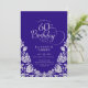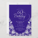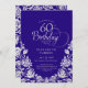 Lila silberne elegante 60. Geburtstagsfeier Einladung. Klassisches Design mit Rose, Imitaten Silberfolie und Typografie Script Schriftart. Die trendige Einladungskarte eignet sich perfekt für eine stilvolle Damenfeier. Personalisieren Sie Ihre persönlichen Daten. Kann für jedes Alter angepasst werden. Gedruckte Zazzle-Einladungen oder Sofortdownload digitaler Druckvorlage.