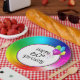 Feines Neon abstraktes Regenbogendesign mit Party Ballons für eine 60. Geburtstagsfeier.