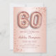 60. Geburtstagsfeier Einladung. Elegantes Design in Imitate Glitzer Rose Gold. Die Einladungs-Karte verfügt über Rose Gold Nummer 60 Ballons und Skript-Schriftart. Ideal für eine stilvolle Feier. Nachricht, wenn du ein Alter brauchst.