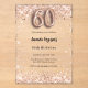Für eine elegante 60. Geburtstagsfeier. Ein klarer, transparenter Hintergrund. Dekoriert mit Rose Gold Konfetti und Nr. 60 mit einem Schriftart im Ballonstil geschrieben. Personalisieren Sie Ihren Namen und Ihre Party-Daten und fügen Sie diese hinzu.