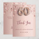 Eine Dankeschön-Karte für einen 60. Geburtstag. Eine Hintergrundfarbe für den Farbverlauf in Rose. Mit Rose Gold tropft glänzende Sterne. vorne: Nummer 60 geschrieben mit einem Ballon Stil Schriftart, große dunkle Rose goldfarbene handgeschriebene Skript und den Text: Danke, Ihr Text, Titel und ein Datum. Zurück: Personalisieren Sie Ihre Dankeschön Notiz und Name.