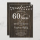 Rustikales 60. Geburtstag Einladung Rustikales, einfaches Design mit dunkelbraunem Holzmuster und Feen-Saitenleuchten. Enthält Skript-Schriftart. Feiert bis 60 Jahre! Kann in jedem Alter personalisiert werden! Nachricht, wenn Sie weitere Anpassungen benötigen.