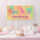Viel Spaß zum Geburtstag mit diesem WooHoo Birthday Banner. Individualisieren Sie ein Jahr und den Namen (sowie eine andere Veranstaltung). Der Text "WooHoo" ist auf einem mehrfarbigen orangen, korallen und gelben Hintergrund mit Magenta und aquamarinen grünen Blume. Die Topografie ist handgezeichnet und ist mehrfarbig in Orange, Magenta, Blau, Grün und Gelb.
