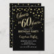 60. Geburtstagsparty Einladung Elegantes Design in Imitate Glitzer Gold und Schwarz. Feiert bis 60 Jahre!