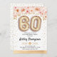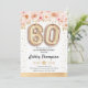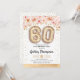 60. Geburtstagsfeier Einladung. Elegantes Design in Imitaten Glitzer Gold mit Blumenakzent. Einladende Karte mit Goldnummer 60 Ballons, Script-Schriftart mit Konfetti. Rosa, weiß, blaue Koralle. Ideal für ein stilvolles 60-tägiges Fest. Nachricht, wenn du ein Alter brauchst.