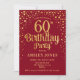 60. Geburtstagsfeier Einladung. Elegantes Design in Rot und Imitat Glitzer Gold. Features stilvolle Skript-Schriftart und Konfetti. Nachricht, wenn du ein Alter brauchst.