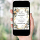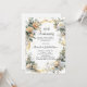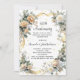 Ein weißer Hintergrund. Weiße und gelbe Blumen, goldenes Band und Imitate mit Diamanten. Personalisieren und fügen Sie einen Namen und Details.