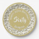 60. Party Zufallszahlenmuster Gold/Weiß Pappteller