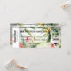 Tropische Blume und botanisch grüne Blätter sind der Hintergrund für diese tropische Einladung des Boardings Pass Destination. Eine lustige Destination individuelle Einladung. Herrlich gemupptes tropisches Grün, Pinks und Orangen.