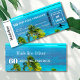 Inspirier deine 60. Geburtstagsfeier mit einem zeitlosen tropischen Bild. Ein wunderschönes Ozeanblau und Palmen-Bild ist der Hintergrund für dieses Boarding Pass Destination Thema Einladung. Eine lustige Destination individuelle Einladung. Der tropische Palmeninselstrand und der moderne Text.